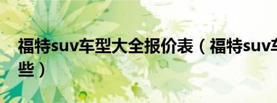大家好,阳阳来为大家讲解下。福特suv车型大全报价表,福特suv车型有哪些很多人还不知道,现在让我们一起来看看吧!1、福特suv车型包括:锐