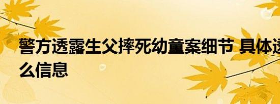 警方透露生父摔死幼童案细节 具体透露了什么信息