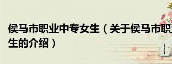 侯马市职业中专女生(关于侯马市职业中专女生的介绍)