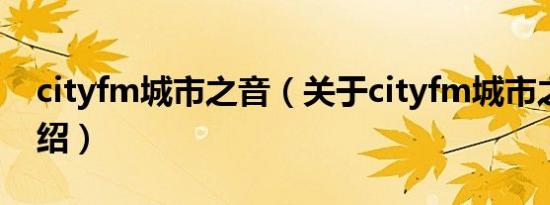 cityfm城市之音(关于cityfm城市之音的介绍)