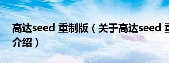高达seed 重制版(关于高达seed 重制版的介绍)
