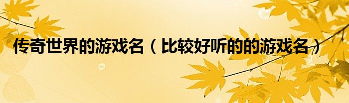 大家好,郎郎来为大家解答以上问题。传奇世界的游戏名,比较好听的的游戏名很多人还不知道,现在让我们一起来看看吧!