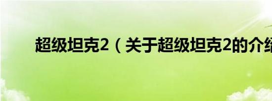 超级坦克2(关于超级坦克2的介绍)