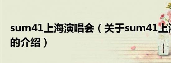sum41上海演唱会(关于sum41上海演唱会的介绍)