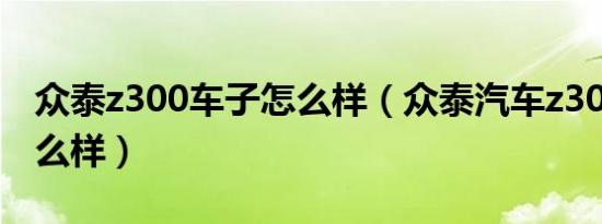 众泰z300车子怎么样(众泰汽车z300参数怎么样)