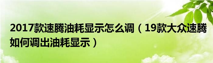 大家好,阳阳来为大家讲解下。2017款速腾油耗显示怎么调,19款大众速腾如何调出油耗显示很多人还不知道,现在让我们一起来看看吧!