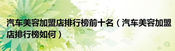 大家好,阳阳来为大家讲解下。汽车美容加盟店排行榜前十名,汽车美容加盟店排行榜如何很多人还不知道,现在让我们一起来看看吧!