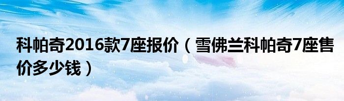 大家好,阳阳来为大家讲解下。科帕奇2016款7座报价,雪佛兰科帕奇7座售价多少钱很多人还不知道,现在让我们一起来看看吧!
