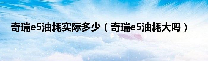 大家好,阳阳来为大家讲解下。奇瑞e5油耗实际多少,奇瑞e5油耗大吗很多人还不知道,现在让我们一起来看看吧!