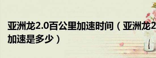 亚洲龙2.0百公里加速时间(亚洲龙2.0百公里加速是多少)