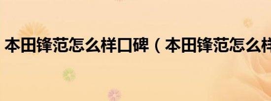 本田锋范怎么样口碑(本田锋范怎么样口碑)