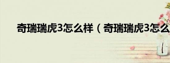 奇瑞瑞虎3怎么样(奇瑞瑞虎3怎么样)
