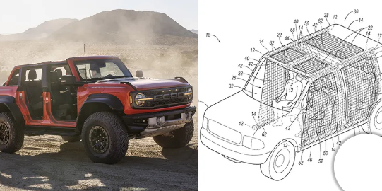 这家汽车制造商已经为一种屏幕系统申请了专利,该屏幕系统可以安装在像Bronco这样具有可拆卸车门和车顶板的车辆上。