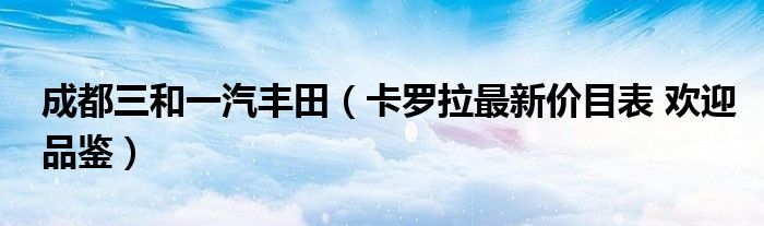 导读 大家好,小太阳来为大家讲解下成都三和一汽丰田,卡罗拉最新价目表 欢迎品鉴很多人还不知道,现在让我们一起来看看吧!1、还在想哪里买卡