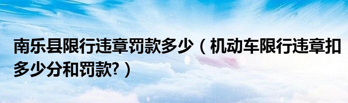 导读大家好,小美来为大家解答以上问题。南乐县限行违章罚款多少,机动车限行违章扣多少分和罚款?很多人还不知道,现在让我们一起来看看吧!1、