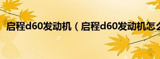 启程d60发动机(启程d60发动机怎么样?)