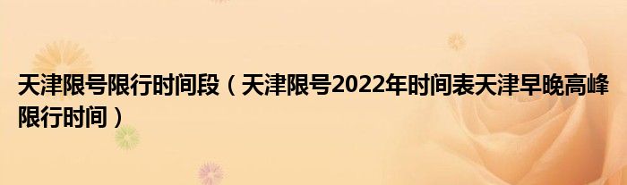 大家好,小太阳来为大家讲解下天津限号限行时间段,天津限号2022年时间表天津早晚高峰限行时间很多人还不知道,现在让我们一起来看看吧!