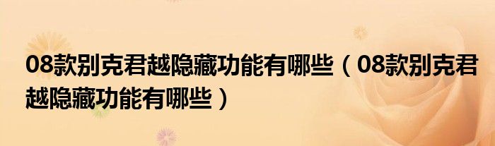 大家好,小太阳来为大家讲解下08款别克君越隐藏功能有哪些,08款别克君越隐藏功能有哪些很多人还不知道,现在让我们一起来看看吧!