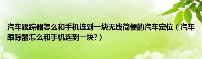 大家好,小美来为大家解答以上问题。汽车跟踪器怎么和手机连到一块无线简便的汽车定位,汽车跟踪器怎么和手机连到一块?很多人还不知道,现在让我们一起来看看吧!
