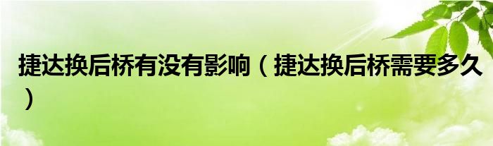 导读大家好,小饭为大家解答以上问题。捷达换后桥有没有影响,捷达换后桥需要多久是什么很多人还不知道,让我们现在一起来瞧瞧吧~!解答:1、