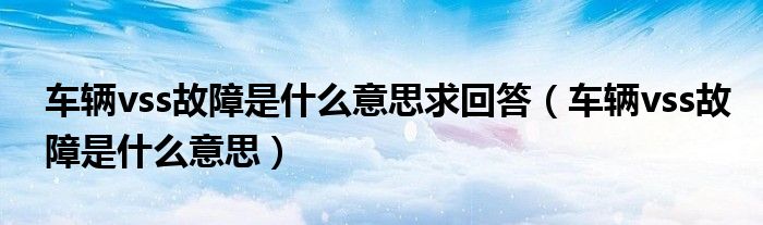 大家好,小饭为大家解答以上问题。车辆vss故障是什么意思求回答,车辆vss故障是什么意思是什么很多人还不知道,让我们现在一起来瞧瞧吧~!
