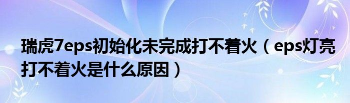 大家好,小饭为大家解答以上问题。瑞虎7eps初始化未完成打不着火,eps灯亮打不着火是什么原因是什么很多人还不知道,让我们现在一起来瞧瞧吧~!