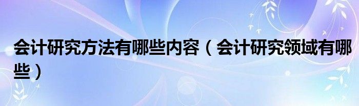 大家好,小问来为大家解答以上问题,会计研究方法有哪些内容,会计研究领域有哪些相信很多人都不知道吧,让我们来一起看看吧