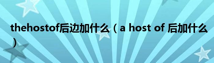 大家好,小问来为大家解答以上问题,thehostof后边加什么,a host of 后加什么相信很多人都不知道吧,让我们来一起看看吧