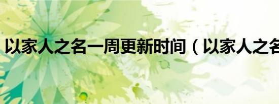 以家人之名一周更新时间(以家人之名介绍)