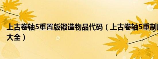 上古卷轴5重置版锻造物品代码(上古卷轴5重制版物品代码大全)