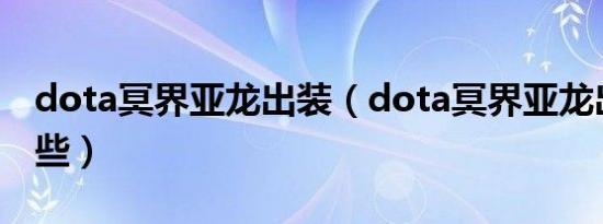 dota冥界亚龙出装(dota冥界亚龙出装有哪些)
