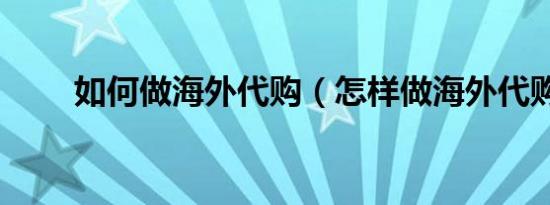 如何做海外代购(怎样做海外代购)
