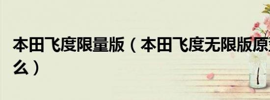 本田飞度限量版(本田飞度无限版原型车是什么)