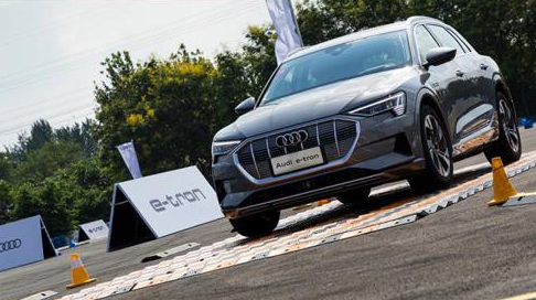 在8字形绕桩中,可以感受到e-tron有着非常精准的转向指向性,动态模式下,方向盘的虚位几乎没有。在合理的车速范围内,整车的寻迹性非常好,你并不觉得自己开着是一台尺寸很大的suv车型。而在车速过快或是转弯前没有控制好重心导致推头的话,车身稳定系统会立即做出反应,对车轮的动力输出进行限制。