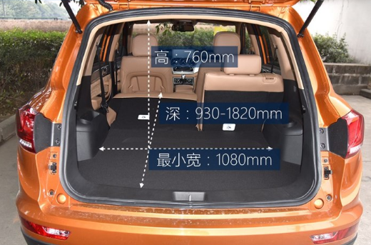 野马T80后备厢尺寸进深为930-1820mm。宽度为1080mm,高度为760mm,两侧的轮拱有些突出,占用不少空间,表现在同级车型中还是不错的,后排座椅可以按照比例放倒的。而且放倒之后的地板很平整,拉货搬家什么的挺方便的。