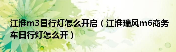 大家好,阳阳来为大家讲解下。江淮m3日行灯怎么开启,江淮瑞风m6商务车日行灯怎么开很多人还不知道,现在让我们一起来看看吧!