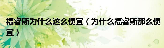 大家好,阳阳来为大家讲解下。福睿斯为什么这么便宜,为什么福睿斯那么便宜很多人还不知道,现在让我们一起来看看吧!