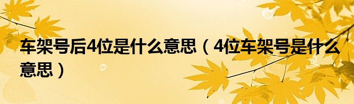 大家好,阳阳来为大家讲解下。车架号后4位是什么意思,4位车架号是什么意思很多人还不知道,现在让我们一起来看看吧!