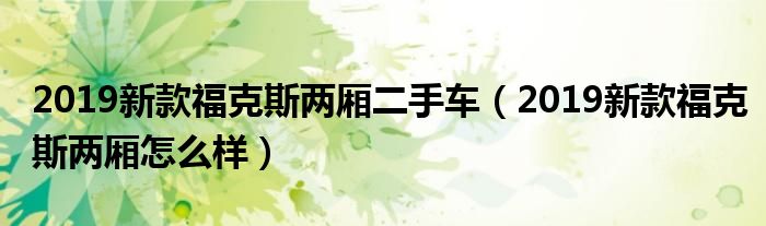 大家好,阳阳来为大家讲解下。2019新款福克斯两厢二手车,2019新款福克斯两厢怎么样很多人还不知道,现在让我们一起来看看吧!