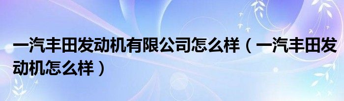 大家好,阳阳来为大家讲解下。一汽丰田发动机有限公司怎么样,一汽丰田发动机怎么样很多人还不知道,现在让我们一起来看看吧!