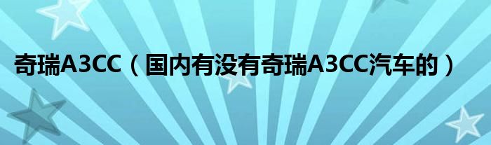 大家好,阳阳来为大家讲解下。奇瑞A3CC,国内有没有奇瑞A3CC汽车的很多人还不知道,现在让我们一起来看看吧!
