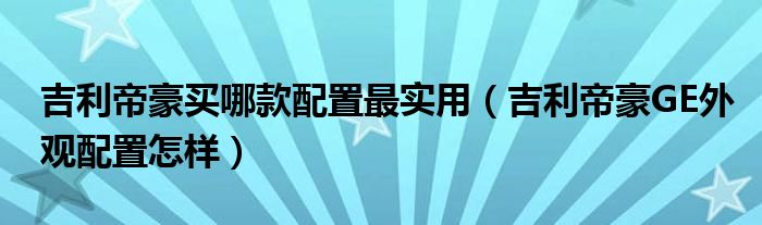 大家好,阳阳来为大家讲解下。吉利帝豪买哪款配置最实用,吉利帝豪GE外观配置怎样很多人还不知道,现在让我们一起来看看吧!