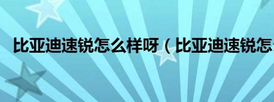 比亚迪速锐怎么样呀(比亚迪速锐怎么样)