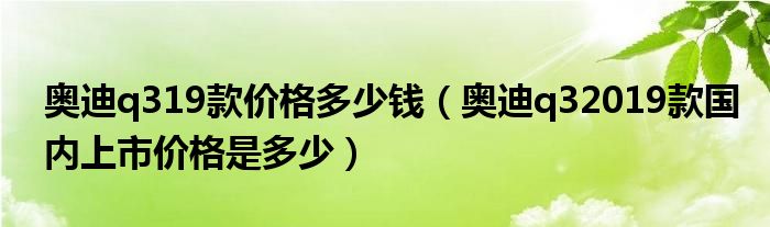 大家好,阳阳来为大家讲解下。奥迪q319款价格多少钱,奥迪q32019款国内上市价格是多少很多人还不知道,现在让我们一起来看看吧!