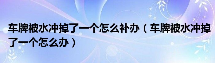 1、当汽车的车牌被水冲掉一个,需要到车管所进行补领,重新安装上才可以继续驾驶汽车上路,路上行驶的汽车必须具备前后各一个车牌,否则会受到交警的处罚。