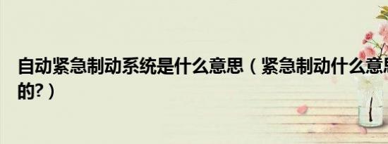 自动紧急制动系统是什么意思(紧急制动什么意思是干什么的?)