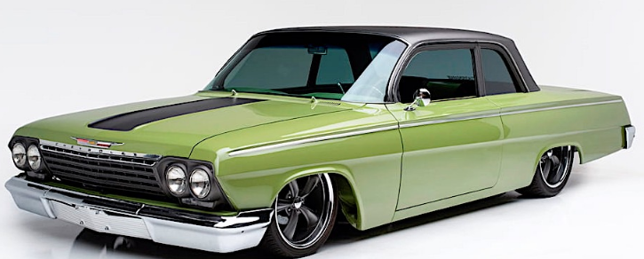您看到的是Biscayne的绿色示例,肯定比定制工作的极端情况更接近。由于装有空气悬架,它可以低空骑行,在引擎盖下隐藏着一台未指定输出的LS3发动机,自从安装在舱内以来,就一直行驶600英里,并与4L60E自动变速箱相连。