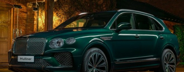 Bentley Mulliner 的外观采用 Viridian 打造,这是来自 Bentley 一系列颜色的深翡翠色,还配备 22 英寸明亮机加工车轮、更大的自信矩阵式格栅、受切割水晶玻璃器皿启发的智能 LED 矩阵式前照灯和重新设计的后挡板,带有新的封装的灯。辐条的中心口袋已涂上 Viridian 以匹配车身。