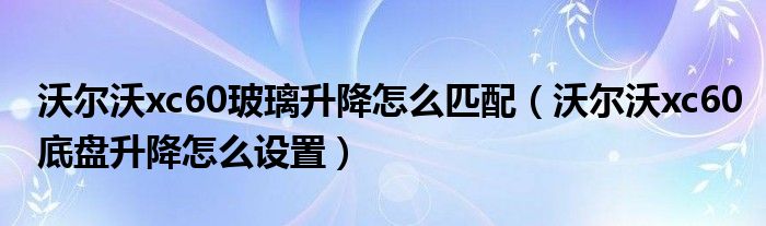 大家好,小太阳来为大家讲解下沃尔沃xc60玻璃升降怎么匹配,沃尔沃xc60底盘升降怎么设置很多人还不知道,现在让我们一起来看看吧!