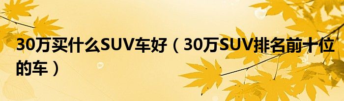 1、30万左右的SUV基本都是合资SUV,其中不乏豪华品牌。但是很多消费者不在乎品牌,最重要的是性价比。那么30万应该买什么样的SUV呢?今天我们就来看看这款30万SUV的十大车。1.奔驰GLA指导价:26.98-395800奔驰GLA是奔驰家族中最便宜的SUV。作为一款紧凑型豪华SUV,GLA车身相对较低,车身线条流畅优雅,前脸巨大的奔驰logo彰显其不凡的身份。如果仅从厂家给出的指导价来看,GLA可能并不是30万左右性价比最高的SUV。全系标配一键启动、全景天窗、前后雷达、发动机启停等。但是终端优惠很大,30万的预算可以高配购买,甚至可以装更多的配置。动力系统方面,奔驰GLA提供1.6T和2.0T高低功率版本,传动系统匹配7速双离合变速箱。2.宝马X1的指导价为:28.38-37980。还有,宝马X1有非常大的终端优惠。与其他竞争对手相比,宝马X1的优势在于提供更宽敞的内部空间。前脸的大尺寸双肾进气格栅和蓝天白云的logo就不用说了,足够吸引眼球。不同地区有不同的激励措施。30万的预算基本可以考虑顶配车型,包括无钥匙进入/一键启动、电动后备箱、前后雷达、倒车影像、真皮座椅、前排座椅加热等配置。动力系统方面,宝马X1提供1.5T和2.0T两种低功率选择,传动系统分别匹配6速手自一体变速箱和8速手自一体变速箱。此外,顶配车型还配备了全时四驱系统。3.奥迪Q3指导价:24.6-340700。深受年轻人喜爱的奥迪Q3也是一款30万左右性价比不错的SUV车型。整体造型圆润,车身线条流畅,更多棱角线条的加入让Q3稳重了许多。30万预算可以考虑高配车型,配备全景天窗、电动后备箱、自动双区空调、氛围灯等配置。动力系统方面,奥迪Q3提供1.4T和2.0T高低功率版本,传动系统分别匹配6速双离合变速箱和7速双离合变速箱。4.长安PSA DS7的指导价为:20.89-3099万。作为法国DS品牌的旗舰SUV,DS7不仅彰显了其豪华,而且比同级别车型更具设计感和精致感。巴黎之光全LED大灯、串珠LED日间行车灯、3D钻石尾灯,无不诉说着法系的浪漫精神。作为一款豪华SUV,DS7在配置上自然不寒酸。全系标配胎压监测、前后头部气帘、一键启动、全景天窗、后雷达、自动空调、后视镜加热、发动机启停等。中高端车型会更丰富。动力系统方面,DS7搭载1.6T高低功率涡轮增压发动机,最大功率215马力,传动系统匹配8速手自一体变速箱。5.本田冠道指导价336022.00-332800。目前皇冠属于本田的旗舰车型。它最大的卖点是它有BBA对手的实力,但它比这些对手便宜。不用说,大家都知道本田成本低,价格高,性价比非常高。这车不是本田,隔音好,驾驶感觉像在棉花上滑行一样舒服;内饰有高档感,质感特别好。这不是冠道最好的部分。这辆车最大的优点是它的空载性能。柔性扶手箱可以躺在地板上,睡在空出来的后排。还有一个非常大的后备箱,非常适合做家用车。建议买2.0T版本,也就是370版本,因为1.5T发动机会偏向肉,2.0T发动机动力和油耗都不错。车主反馈11升左右,价格30万左右。6.斯巴鲁森林人的指导价为:22.38-28.58万。斯巴鲁森林人的这款车在这么多SUV中很有特色,很独特。首先是全进口车,不会像其他国产合资车一样在结构上有所降低。而且,它的价格并不比那个高多少